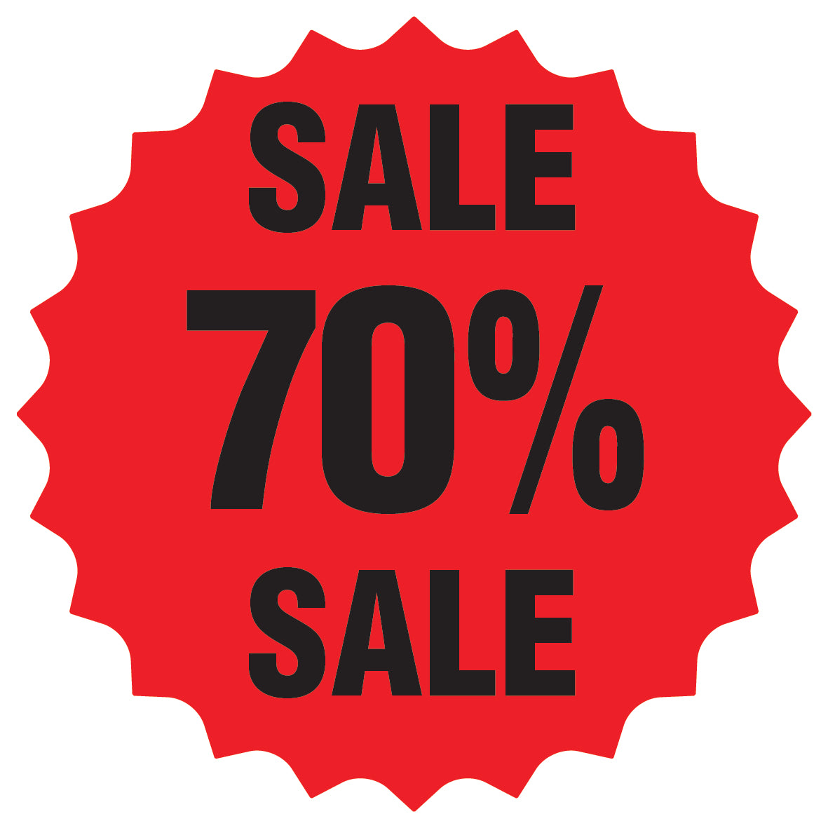 Promotional stickers round star-shaped "Sale 70% sale" 2-7 cm LH-SALE-5070-RS-10-14-88